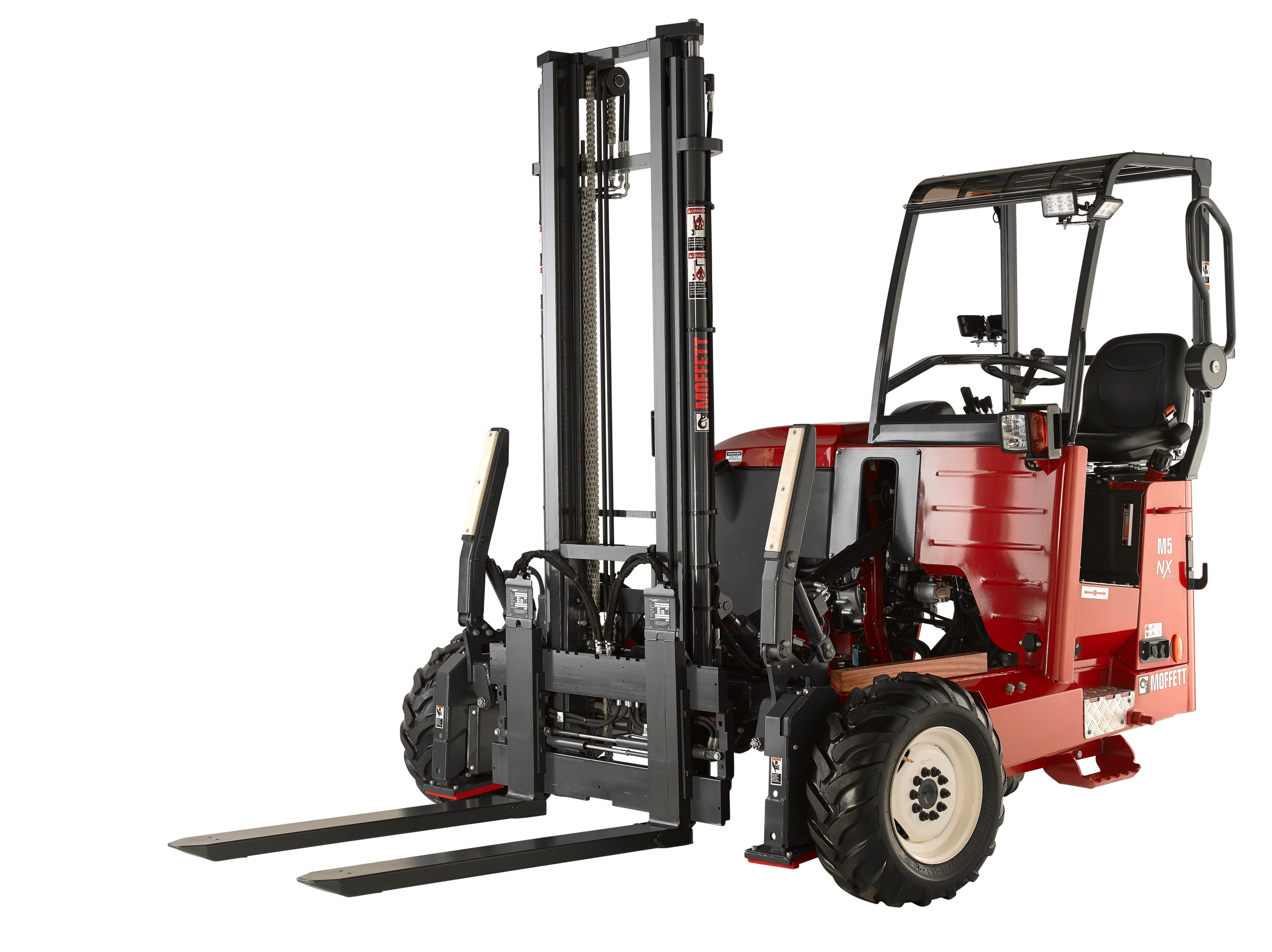 The MOFFETT M5 NX is the specialist for medium- to heavy-duty tasks, with a seriously efficient power-to- weight ratio. Lifting up to 5000 lbs, the M5 NX easily masters both rough terrain and the most confined areas – transferring loads quickly and safely throughout busy yards, warehouse facilities or traffic. Designed for a wide range of industrial and commercial applications, especially for the use on difficult terrain.